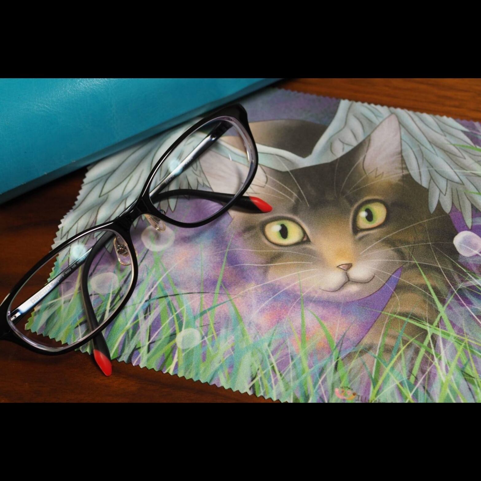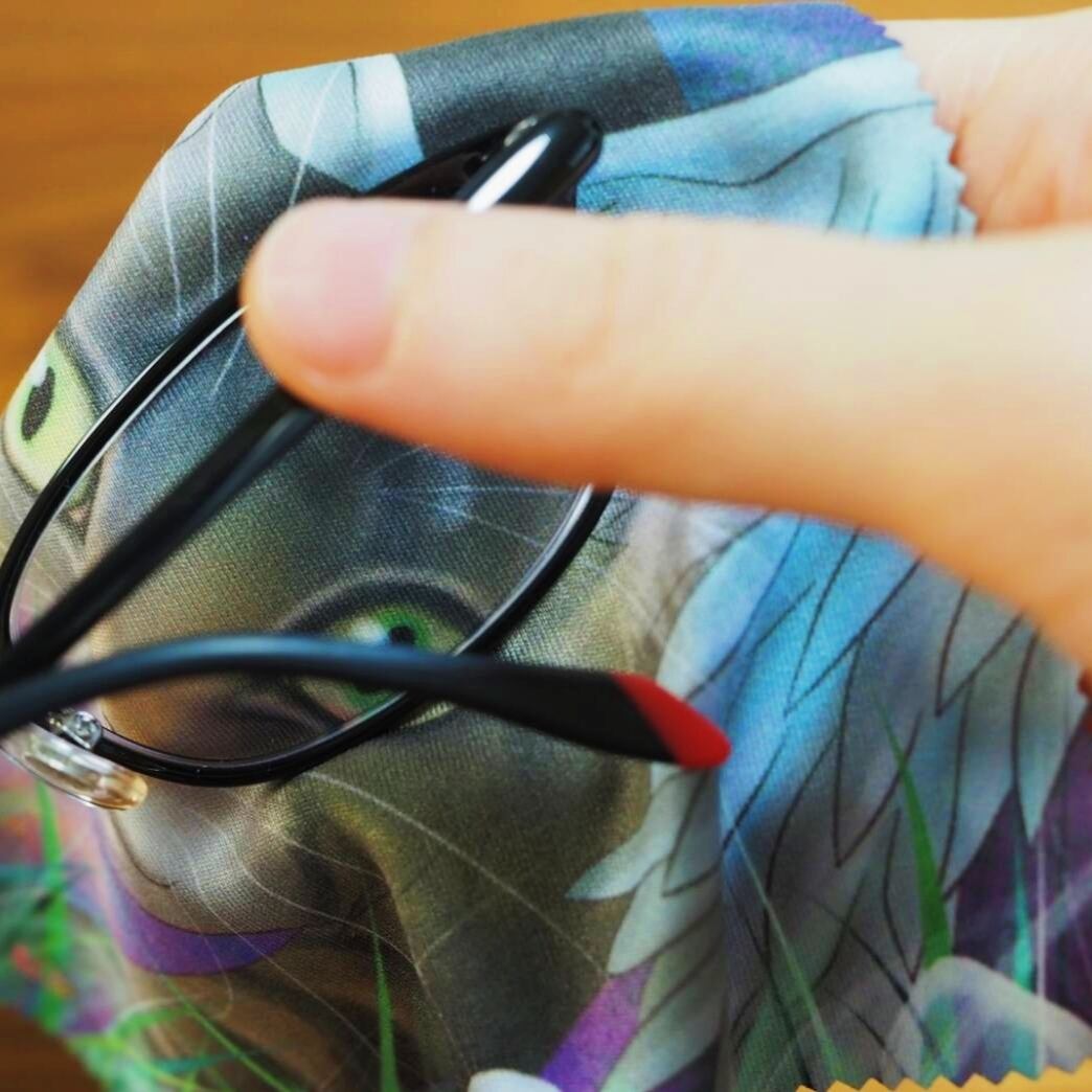 ちろのイラストを使用した、メガネ拭きになります。 素材:ポリエステル100% サイズ:150×180mm 作品名:ふわふわの世界 作品URL:https://www.pixiv.net/artworks/50486415