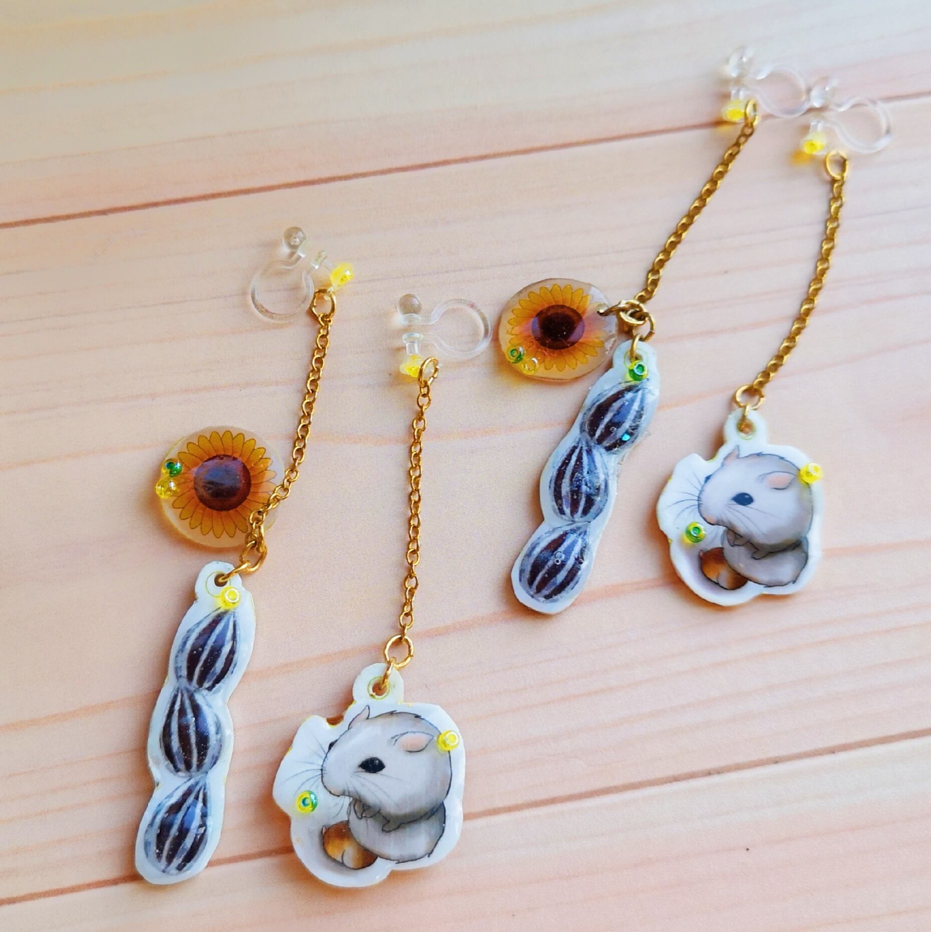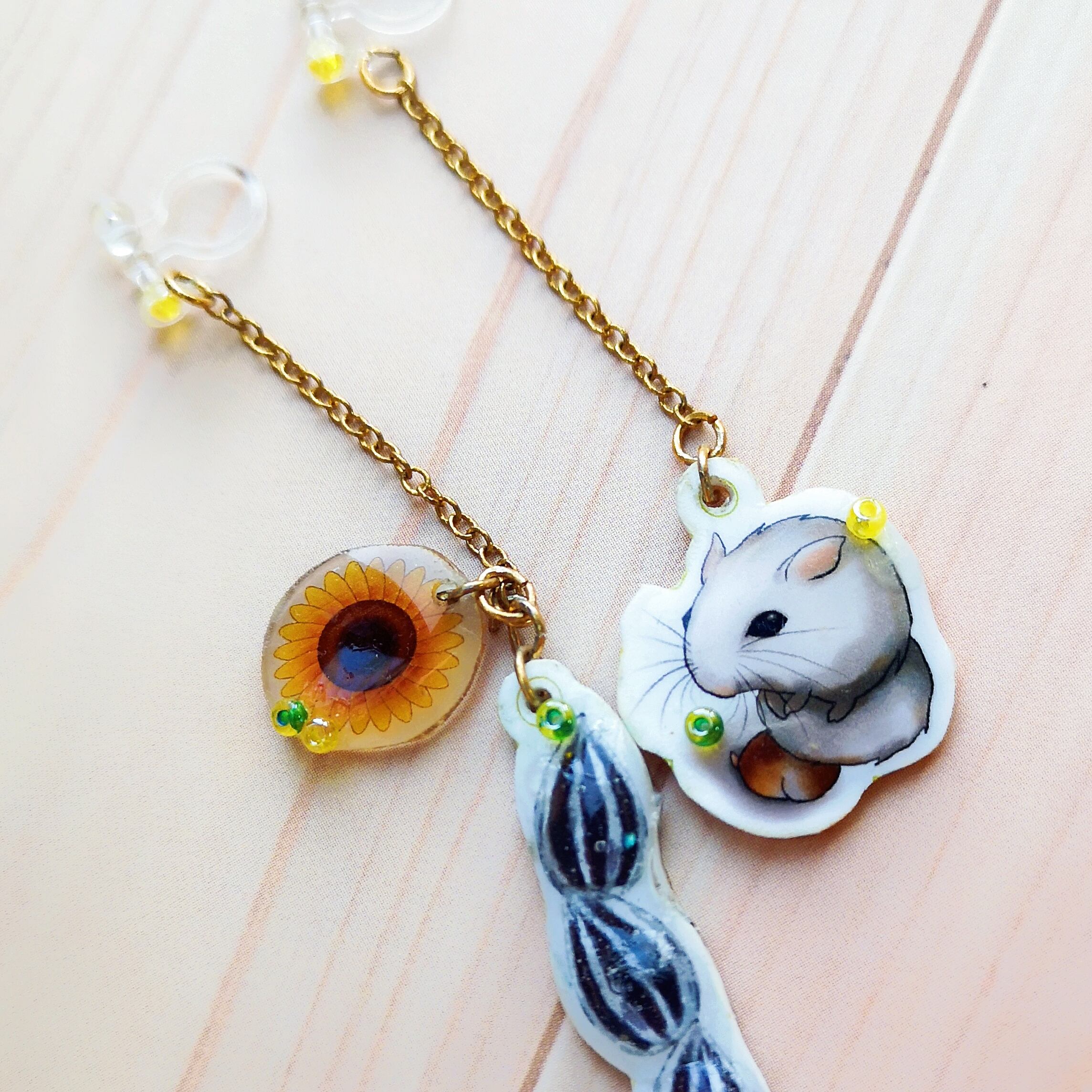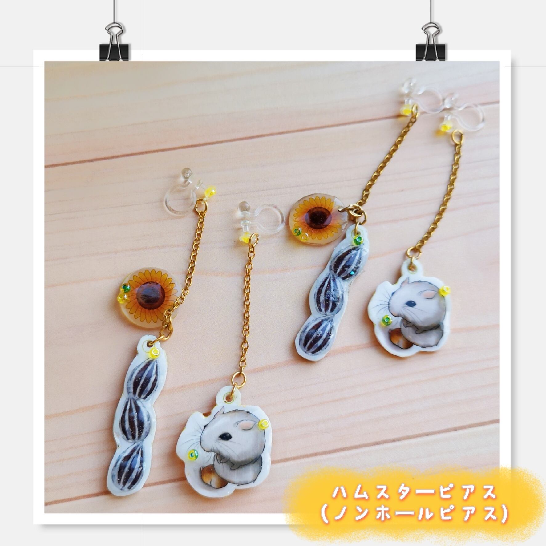 3段重ねになったハムスターをモチーフにしたノンホールピアスです。